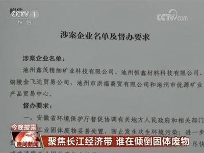 19日,生态环境部通过《晚间新闻》栏目,独家通报安徽省池州市,一起在长江边违法堆放固体废物案件的初步调查和处理情况。
