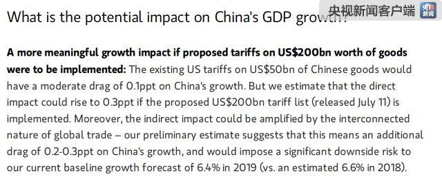 美国著名投资银行摩根斯坦利,近日就发布了一份报告。其核心结论有三条:美国对中国340亿美元商品加征关税,会令中国GDP增速下降0.1个百分点;如果继续对2000亿美元商品加征关税,会下降0.3个百分点;这些动作的间接影响传导下来,会再给中国GDP增加0.2到0.3个百分点的下行影响。