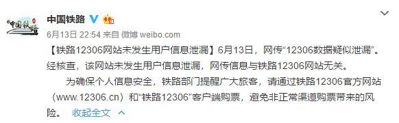 【提醒】信息泄露一直影响着人们的日常生活,保护自己的账号安全,定期修改密码是良好习惯,但是扩散谣言易导致恐慌,不利于营造良好的网络环境。中国铁路官方微博及时出面辟谣有利于快速澄清谣言,减少人民的恐慌。但从另一方面,也应当更加注意管控信息泄露,保护民众信息安全。