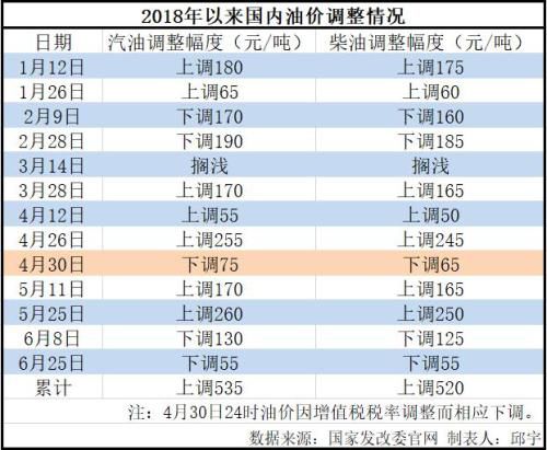 中新网记者注意到,今年以来,国内汽柴油价格有过两次幅度较大的上调。4月26日,汽油每吨上调255元,柴油上调245元;5月25日,汽油每吨上调260元,柴油上调250元。