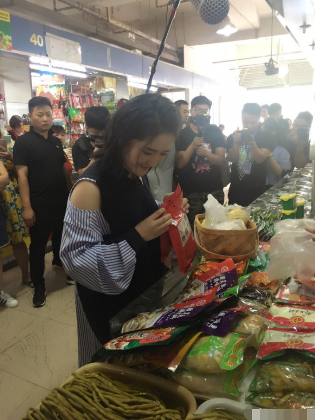 只见谢娜身穿黑色拼接上衣,露出半截白嫩手臂。近距离观看其五官,可谓没有任何一点瑕疵,皮肤光滑透亮,简直嫩出新高度。而在她的左前方放着个竹篮子,想必是其购买的食材。