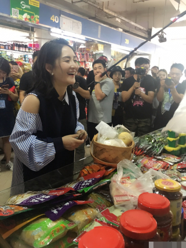 之后谢娜到了其他买菜摊位,谢娜同样与摊主开心热聊。不得不说,谢娜本人也是魅力十足,任何路人看到她都露出了甜美笑容。
