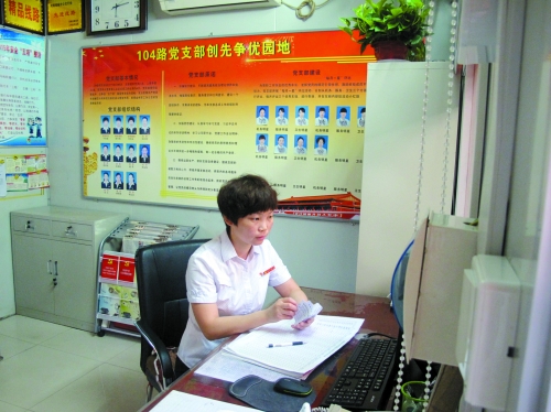 2008年牛智敏光荣入党,她目前是104路党支部书记。104路被称为“公交娘子军”,清一色的女车长,以服务细心著称。