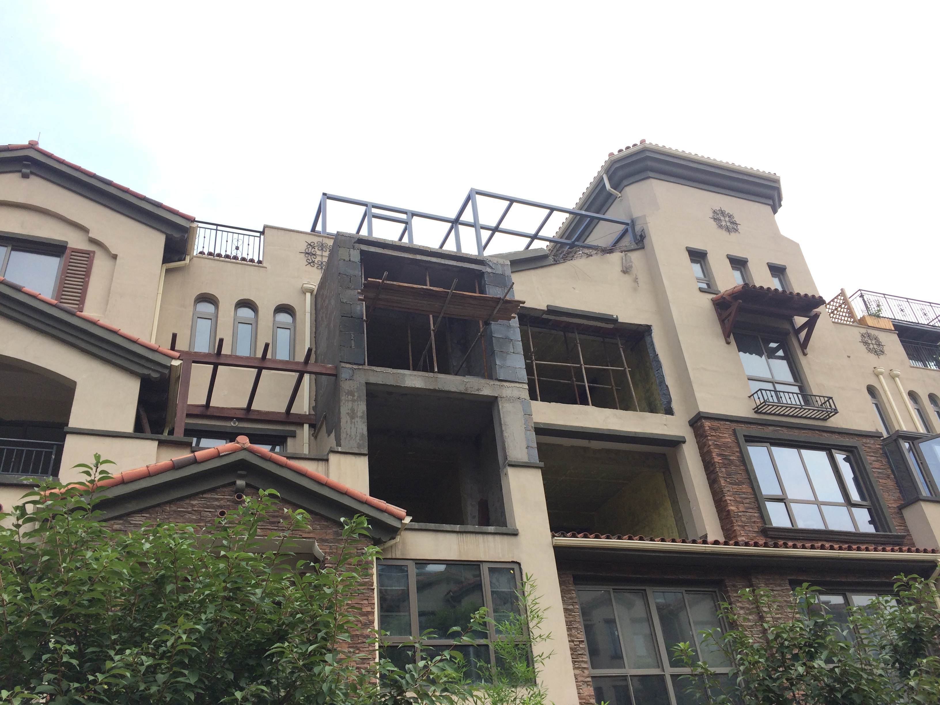 这处加盖的别墅,位于惠济区怡丰森林湖小区2期的46号楼上。本报在今年6月5日曾对此事进行过报道(详见本报2018年6月5日AI·09版《一户加盖两层,四邻六神不安》)。在此前的报道中,楼下的业主黄女士说,楼上的住户将露台拆掉,盖成房间,而且还盖了两层,而加盖的房屋正在自己家的入户门上方,破坏了楼顶的大梁、门窗,而且下面的墙体并不是承重墙,这让她非常担心。