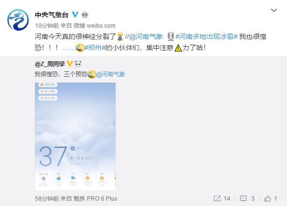 郑州开封新乡焦作濮阳信阳,多地暴雨+冰雹气象局连发90余条雷电冰雹预警!!