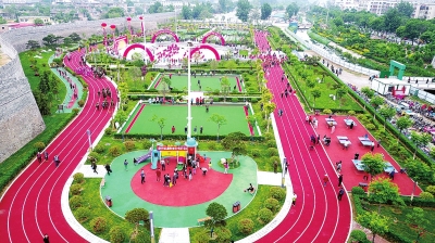 绵延不绝的生态廊道、开阔舒展的绿色广场、错落有致的园林景观;城市主干道两侧郁郁葱葱,路口花坛花团锦簇,像一个个迷你小花园,十分别致;被绿荫环抱的古城墙下,休闲、健身、娱乐等设施,成为集群众休闲、健身、娱乐于一体的两条带状型公园……