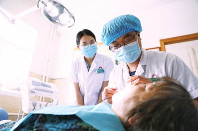 三门峡市中心医院口腔科硕士研究生孙明星正在为病人做检查