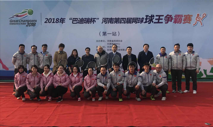 3月24日,由河南省网球协会和中原网球训练基地中心主办的“巴迪瑞杯”河南第四届网球球王争霸赛在中原网球中心开赛。来自内蒙、河北、山东、四川、河南等22个各省市地区的685名选手参加了本次比赛。河南省人大原副主任张德广、河南省政协原副主席、河南省网球协会名誉主席陈义初、河南省体育局原巡视员、河南省网球协会执行主席蒋承顺、威志公司董事兼河南威远体育有限公司董事长王鑫月、中原网球训练基地管理中心主任、河南省网球协会常务副秘书长荣长安、中原网球训练基地管理中心副主任、河南省网球协会副秘书长孙甜甜出席了开球仪式。