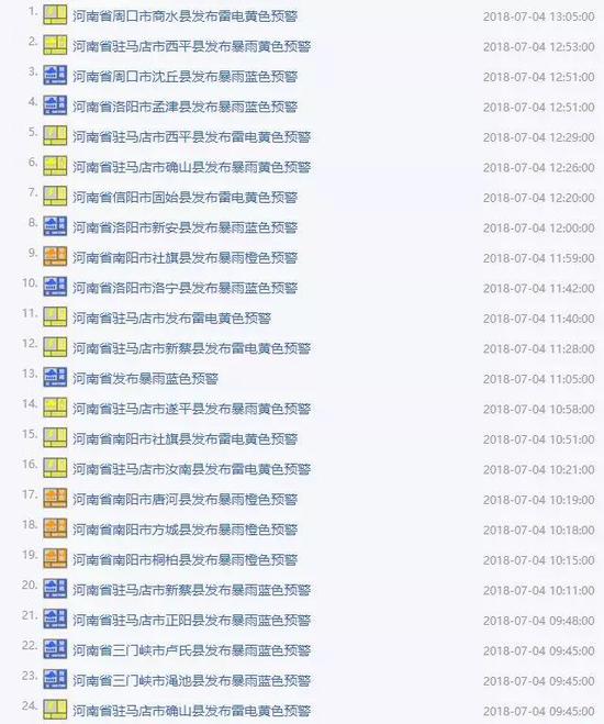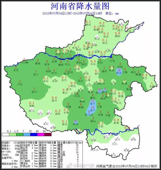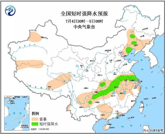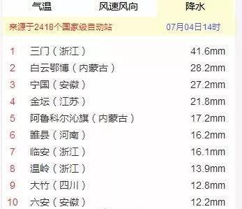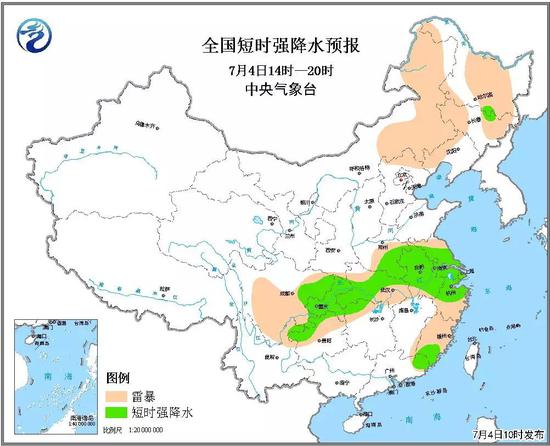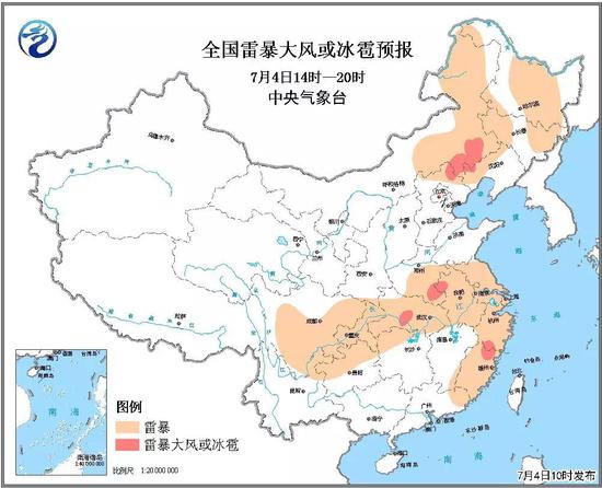 预计7月4日14时至5日08时,河南东南部等地部分地区将有短时强降水天气,小时雨量20-50毫米,局地可达70毫米以上;另外,河南东南部等地的局地将有雷暴大风或冰雹天气。
