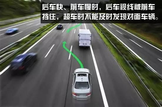 这类盲区来自于外物遮挡,超车时,前车的前方是你的盲区,如果前车突然减速,可能是在避让行人,这时你要注意控制好自己的车速;