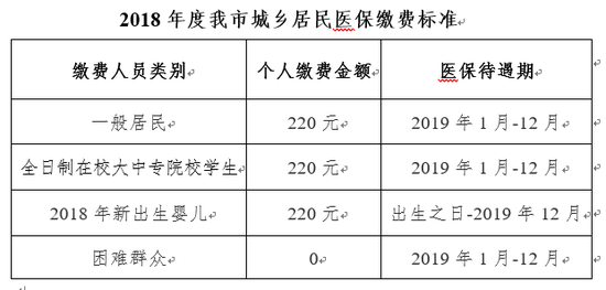 其中,2018年新出生婴幼儿,参保登记后,直接免缴费享受自生之日出起至2018年年底的城乡居民医保待遇;正常缴纳2019年度的医保费用。全日制在校大中专院校学生可按学制一次性缴纳基本医疗保险费。学生在校学习期间,其个人缴纳基本医疗保险费标准不再进行调整。