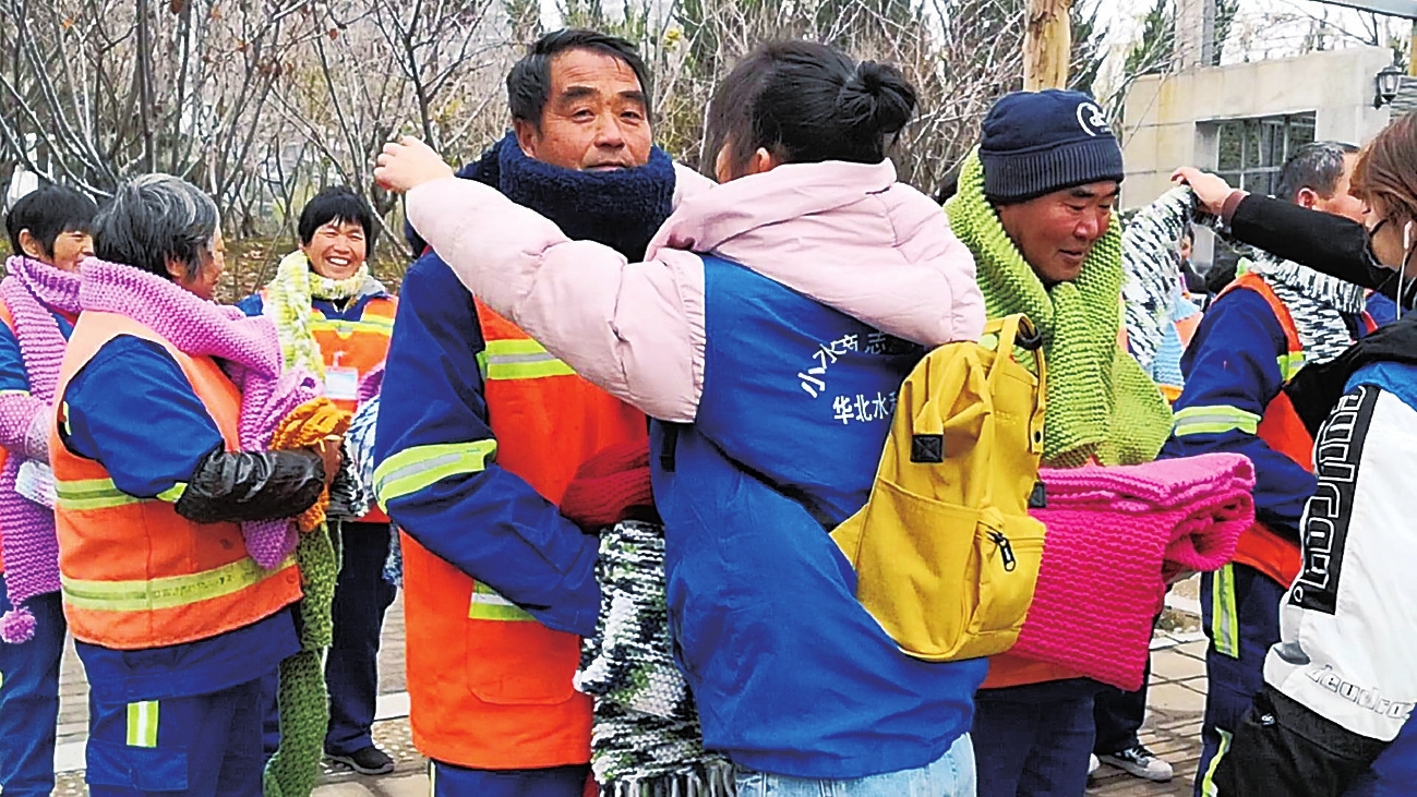 华北水利水电大学数十名大学生手织300条围巾,温暖环卫工人整个寒冬