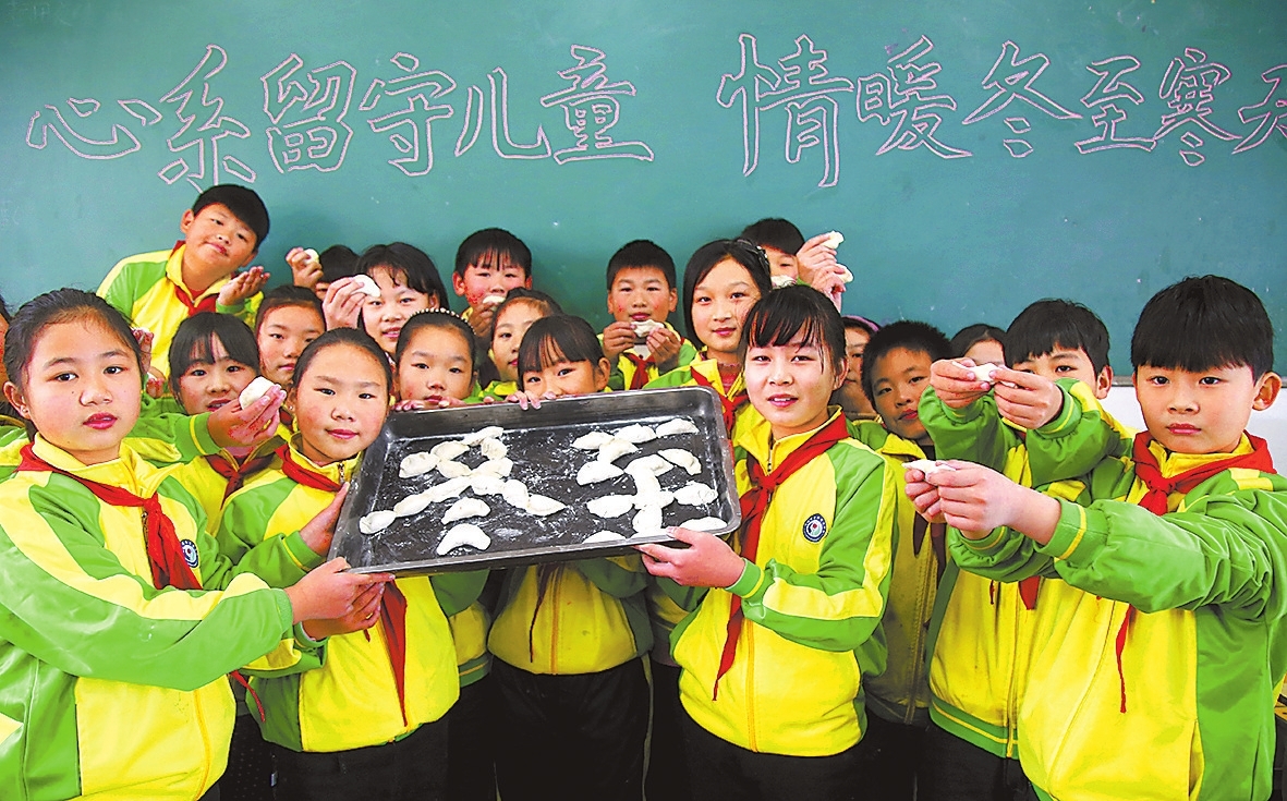 12月21日,项城市清华育英学校开展了“心系留守儿童,情暖冬至寒天”活动,组织留守儿童和老师一起包饺子,讲述冬至的习俗,让孩子们感受到学校大家庭的温暖。张永久摄