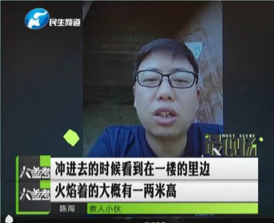 把两个孩子救下来后,陈闯看到他们没有大碍就准备离开,这时孩子的爷爷奶奶赶来了回来,哭喊着:“还有一个孩子在屋里”。陈闯想都没想,从孩子爷爷的手里拿过钥匙就冲进了屋里。