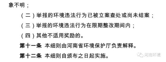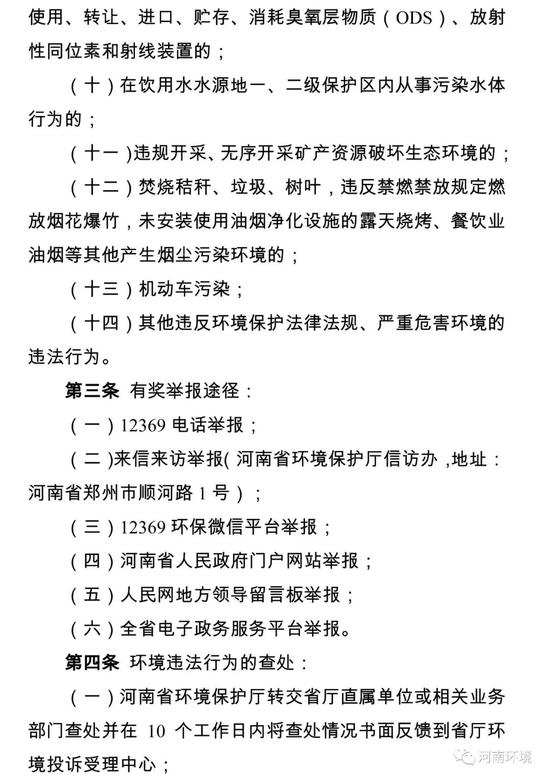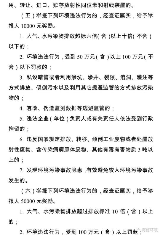 为进一步做好环境污染举报奖励工作,近日,河南省环境保护厅修改完善了《河南省环境污染举报奖励实施细则》并印发实施。新的《河南省环境污染举报奖励实施细则》具体内容如下: