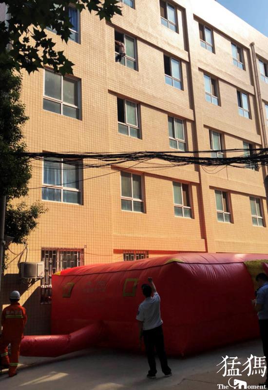 9月11日上午,郑州市陇海路一所专科学院女生宿舍楼上,一名学生模样的女子骑在4楼窗户边欲轻生跳楼。辖区消防、民警和急救医护人员接警后紧急到场展开救援,校方也及时联系女孩家人赶到现场进行劝解。