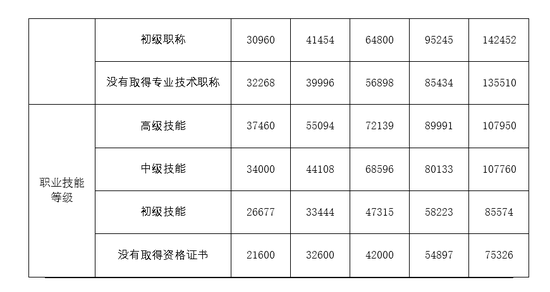 以职业技能等级划分,高级技能劳动者年收入为3.7万~10.7万之间;中级技能劳动者为3.4万~10.7万之间;初级技能2.7万~8.5万之间。