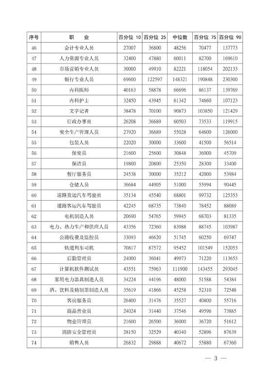 据介绍,今年我市人力资源市场工资指导价位采用分位值的形式,分位值是表示被调查群体中有n%的数据小于此数值,n的大小反映市场不同水平。与以往不同,今年指导价位分:10分位、25分位、中位数、75分位、90分位5个档次发布。