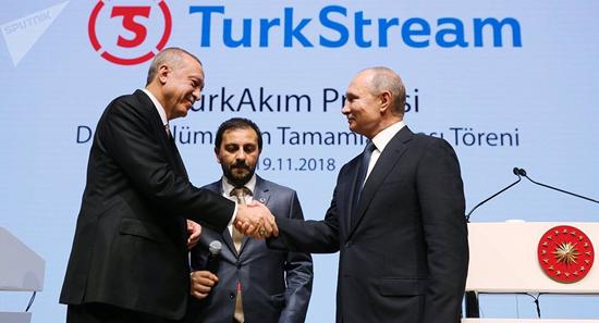 2014,根据普京的建议,通过土耳其的天然气管道由原来的“南流“更名为“土耳其流“。“土耳其流“天然气管道由两条支线组成,每条支线的输气能力为157.5亿立方米。第一条支线将为土耳其消费者供气,第二条支线为南欧和东南欧消费者供气。