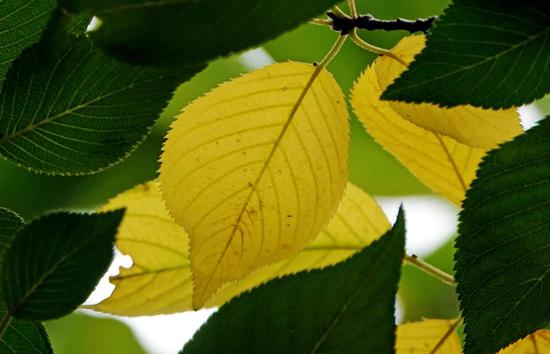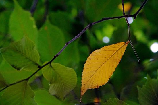 9月5日,碧沙岗公园,一些树的叶子开始变黄,露出秋天的色彩。