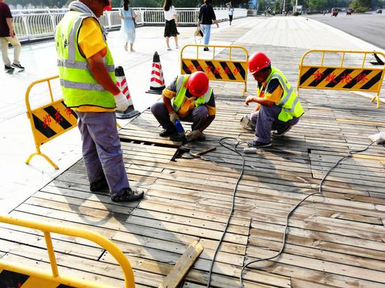 截至目前,累计清理桥梁伸缩缝52道,桥梁栏杆除锈防腐处理200余米,修复更换破损木栈道19.3平方米,更换桥面人行道侧面脱落石材11.19平方米,整修桥台水渍24处,检测桥梁结构4座。下一步,作为桥梁负责单位的东越公司还将建立桥梁长期养护机制,定期开展桥梁综合整治工作,加强对桥梁的细致排查,积极开展桥梁精细化养护日常养护工作,为广大公众提供更加良好的桥梁通行服务。