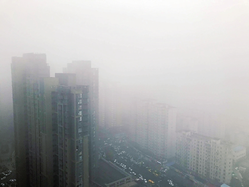 雾浓,而霾也重。周日大部分时间段,郑州的空气污染等级为重度污染。