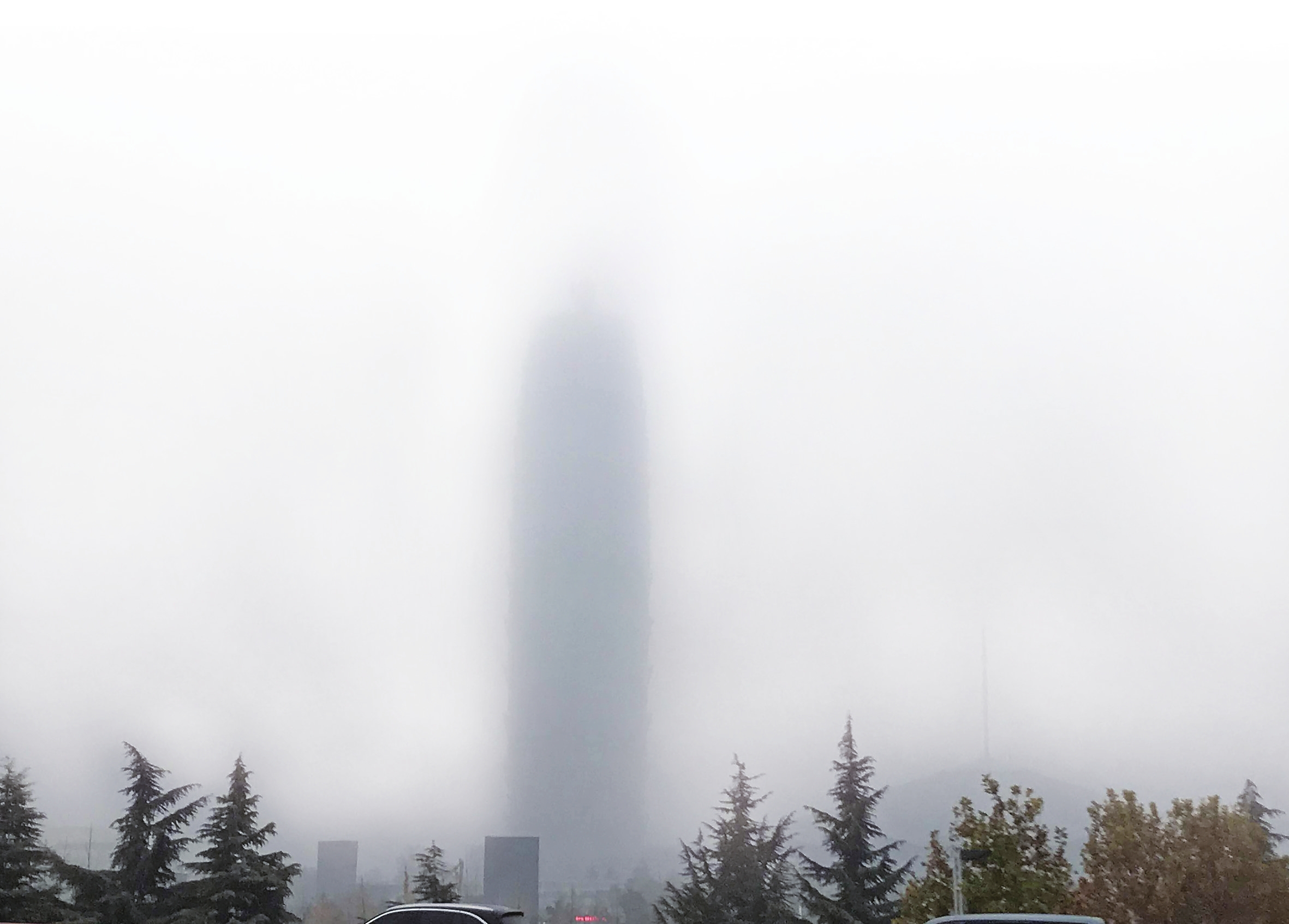 在金水东路与东风南路交叉口,平时能清晰地看到郑州东站西侧的“双子塔”,但13时许,刘先生经过此处时,却只看到了弥漫的大雾,“双子塔”变得踪影全无。