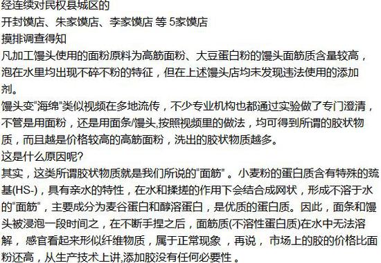 馒头泡水成海绵 网传郑州洛阳等地馒头加胶 真相来了